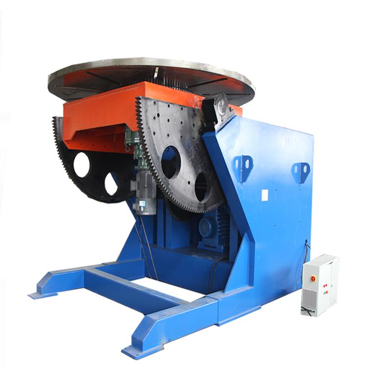 2T變位機主要用于零部件的焊接和裝配。在使用中將工件總成固定在變位機回轉工作盤上,可以隨回轉工作盤360°范圍做任意回轉及設定角度內(nèi)翻轉,因此焊接過程中,縱向立焊、仰焊焊縫能快速變位后轉化為平焊,使繁重的焊接工作變得更加人性化,減輕工人的勞動強度,使焊接現(xiàn)場更加安全和規(guī)范,從而保證焊縫質量,提高焊接效率,保證員工安全。翻轉機構采用蝸輪蝸桿手動調節(jié)工作臺面0-120度任意可調,并有縮緊裝置。控制電源采用脈寬調制技術調節(jié)范圍廣,防高頻獨特設計,適合多種場合。電機采用國內(nèi)知名品牌,直流電機恒轉矩輸出。保證在低速穩(wěn)定工作??刂葡溆険踉O計保護面板按鈕,面板設有電源和工作指示燈,操作方便。單獨的焊接地線接線處,大電流導電碳刷,更換方便。整機外觀先進噴塑法蘭處理,顏色鮮亮、防銹能力較強。根據(jù)工件大小、旋轉速度快慢可以靈活選擇不同比較高轉速,定做特殊變位機。 1.采用變頻器無級調速,調速范圍寬,精度高,啟動力矩大。 2.特殊設計的凹槽式鋼芯膠面滾輪,摩擦力大,壽命長,承載能力強。組合箱型底座,剛性大、承載力強。 3.制造工藝先進,各軸孔直線度、平行度好,較大限度減小因制造精度不足造成的工件竄動量。 4.焊接變位機根據(jù)工件直徑大小自動調節(jié)滾輪支架的角度,滿足不同直徑工件的支撐及旋轉驅動。